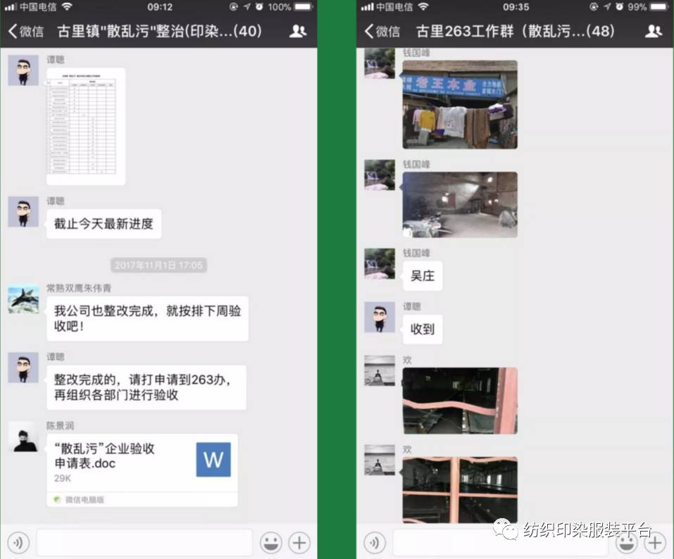 古里镇 落实“四定” “多路”并进 整体推动“散乱污”专项治理验收工作 当前,古里镇“散乱污”专项整治工作已进入攻坚克难的决胜阶段。为了打好这场攻坚战,近期,古里镇拿出“独门秘籍”,“多路”并进,全力做好专项整治扫尾工作。 1.定时间 分行业召开推进会 再次明确 整治时限、整治要求和验收标准 2.定标准 各行业整治工作组验收 突出“重点部位”和“关键环节” 印染行业 整治消防通道 印染行业 拆除泡沫夹芯板(拆除中) 3.定进度 每个行业都组建微信工作群 实时更新整治进度 保证信息沟通畅通无阻 4.定方向