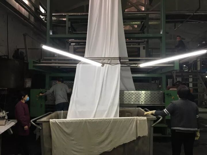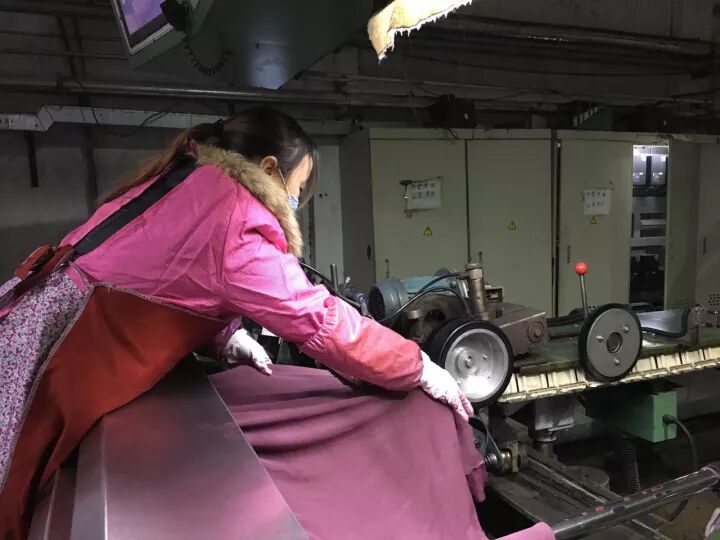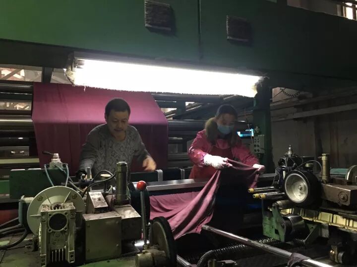 工人将白布放在染色定型机上,将染色助剂注入机器内,启动机器,便可将原先的白布染成各种颜色。根据国家服装质量监督检验中心检测,运达印染研发的高分子染色助剂耐水色牢度、水洗尺寸变化率等指标全部符合标准。