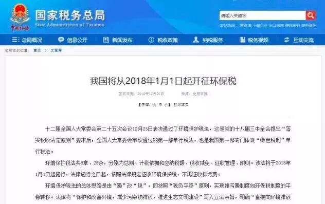 从2018年1月1日起,《中华人民共和国环境保护税法》(以下简称《环保税法》)就要开始实施了。这意味着,再过1个月,运行38年的排污费制度将成为历史。 根据中央财经大学估计,环保税开征后,预计每年环保税征收规模可达500亿元。